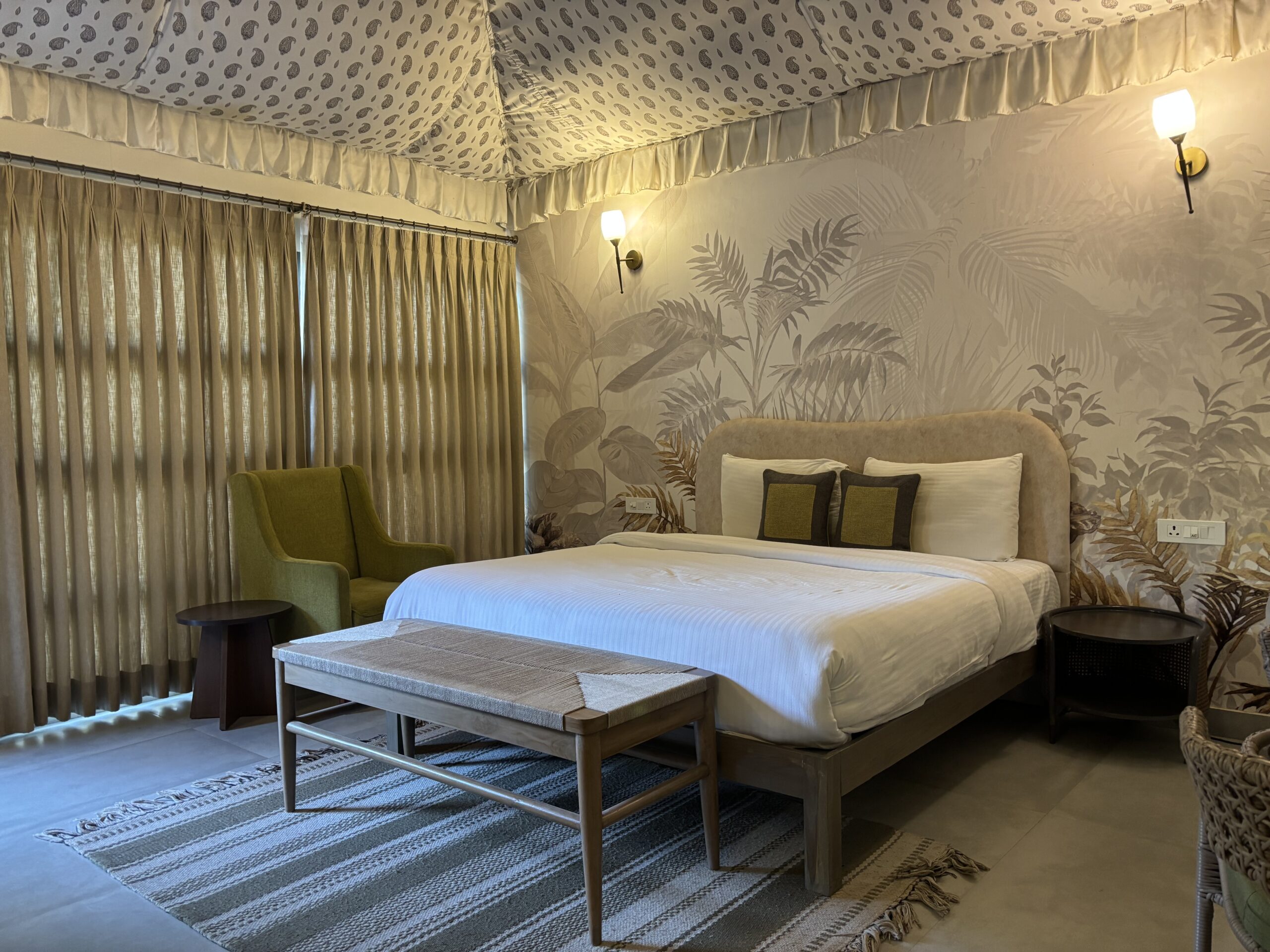 Set within one of the coziest nooks of the property, our Forest Tents were the first spaces to take shape at Botanix. Naturally enclosed by the landscape, they offer a quiet retreat with understated interiors. Canvas walls, vintage accents, and dense greenery create a calming atmosphere that invites you to slow down, disconnect, and immerse yourself in nature.