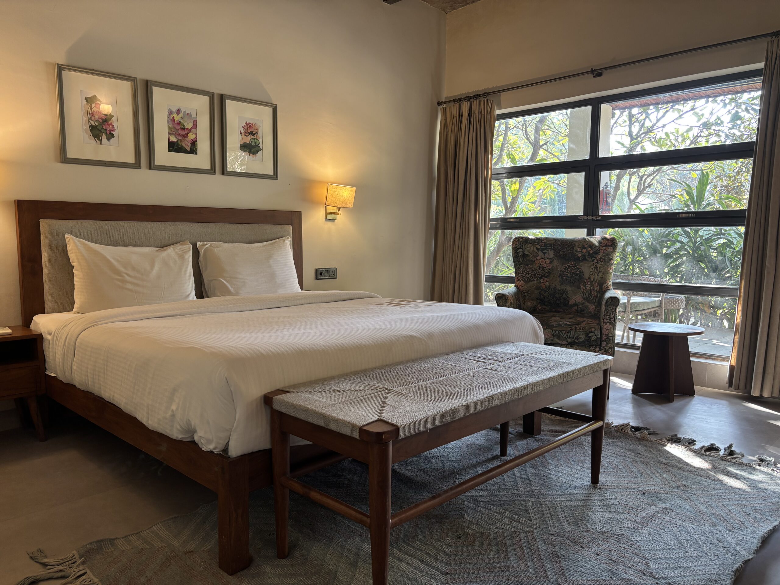 Inspired by the jasmine flower — delicate, fragrant and calming — these cottages bring you closer to the quiet rhythms of nature. Surrounded by the vastness of greens and kissed by soft breezes, they offer simple, elegant interiors that echo the purity of their namesake.Here, time slows down and mornings feel fresh, and life feels beautifully unhurried. Perfect for those who seek a stay that is peaceful, soulful, and deeply connected to nature.