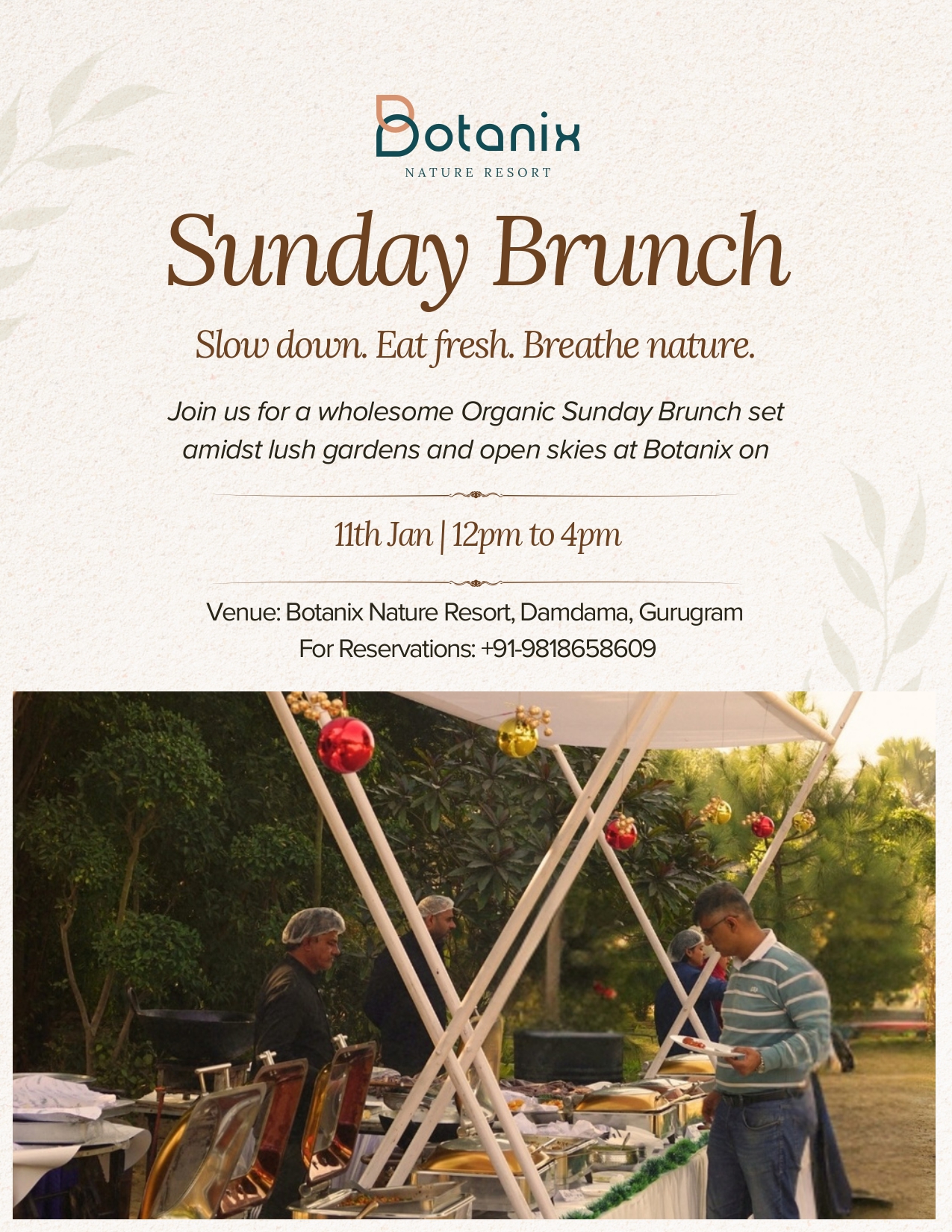 Join us for a wholesome Organic Sunday Brunch set amidst lush gardens and open skies at Botanix.
