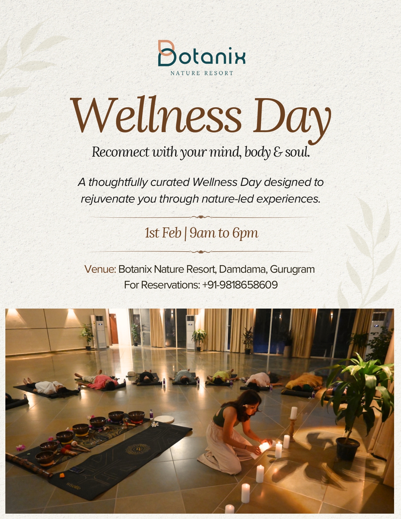 A thoughtfully curated Wellness Day designed to rejuvenate you through immersive, nature-led experiences.